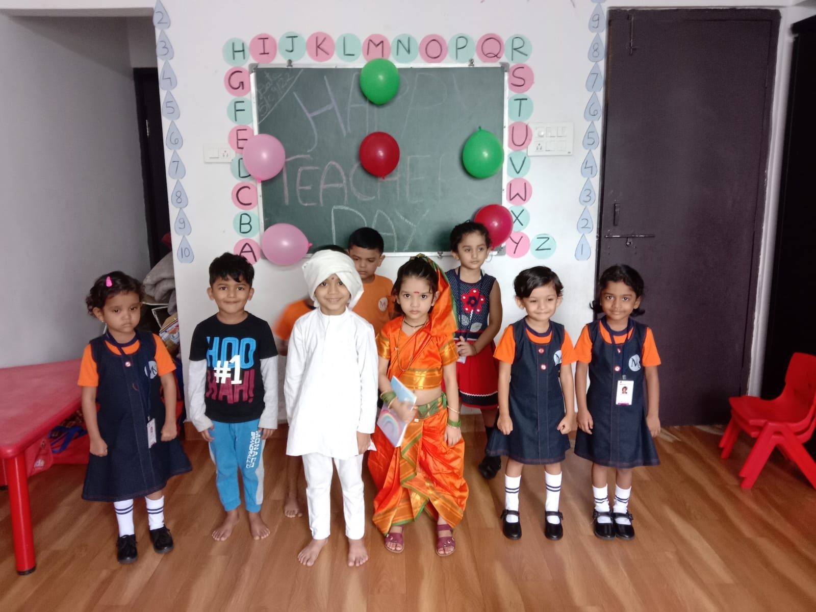 Navratri celebration at preschool is a vibrant and lively event! The day starts with colorful decorations and a festive atmosphere. Children learn about the significance of Navratri and the different forms of the goddess.